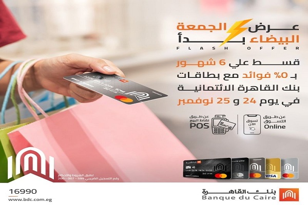 بنك القاهرة يتيح تقسيط مشتريات الجمعة البيضاء على 6 أشهر بدون فوائد