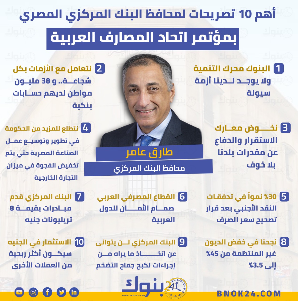 أهم 10 تصريحات لمحافظ البنك المركزي المصري بمؤتمر اتحاد المصارف العربية «إنفوجرافيك»