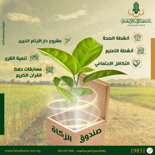 أعلن بنك فيصل الإسلامي المصري عبر صفحته على موقع التواصل الاجتماعي Facebook، مشاركته من خلال صندوق الزكاة التابع للبنك، في العديد من المبادرات الاجتماعية التي تكفل الصحة والتعليم والتكافل الاجتماعي والتنمية المجتمعية، كمشروعات تنمية القرى المصرية الأكثر احتياجاً، بالإضافة لرعايته لمسابقات حفظ القرآن الكريم ومشروع دار الأيتام الخيري.