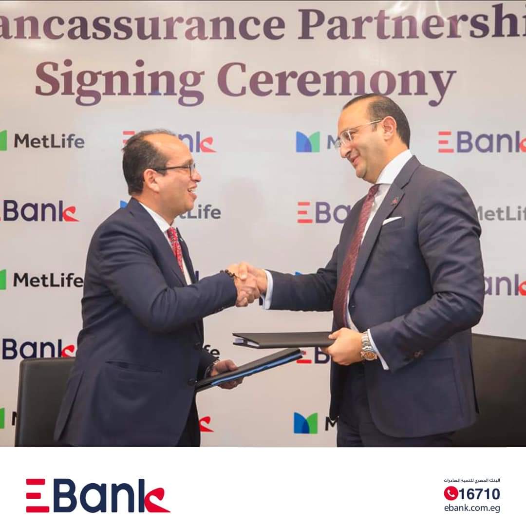 أعلن البنك المصري لتنمية الصادرات EBank، توقيع اتفاقية مع شركة متلايف لتأمينات الحياة، لتسويق وتقديم خدمات الشركة وبرامجها التأمينية عبر فروع البنك المنتشرة في جميع أنحاء الجمهورية، وذلك في إطار استراتيجية البنك لتقديم أفضل الخدمات لعملائه ومن بينها التأمين البنكي.