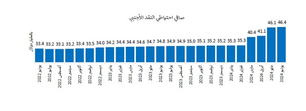 • القضاء على عجز صافي الأصول الأجنبية لتسجل فائضًا 10.3 مليار دولار بنهاية يونيو مقابل عجز 11.4 مليارًا فى يناير 2024