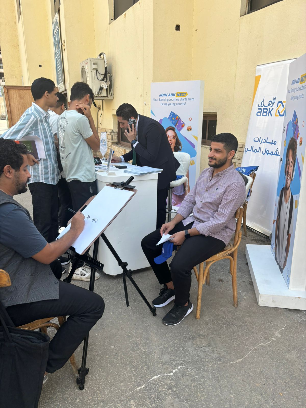 وضمت الفعاليات تواجد رسام كاريكاتير وسط أجواء من البهجة والمرح بين موظفي البنك والطلاب.