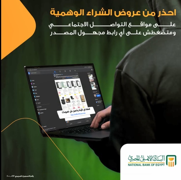 وطالب البنك الأهلي العملاء بالحذر من عروض الشراء الوهمية على مواقع التواصل الاجتماعي وعدم فتح أي روابط مجهولة المصدر.