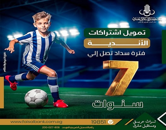 أعلن بنك فيصل الإسلامي المصري، عبر صفحته الرسمية على موقع التواصل الاجتماعي فيسبوك، عن تفاصيل تمويل اشتراكات الأندية، الذي يقدمه البنك بنظام إجارة الخدمات، بأقل عائد تنافسي وأطول فترة سداد.