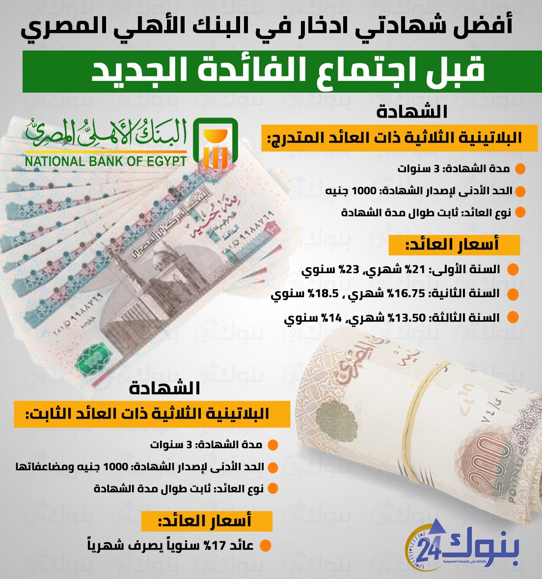 أفضل شهادتي ادخار في البنك الأهلي المصري قبل اجتماع الفائدة الجديد «إنفوجرافيك»