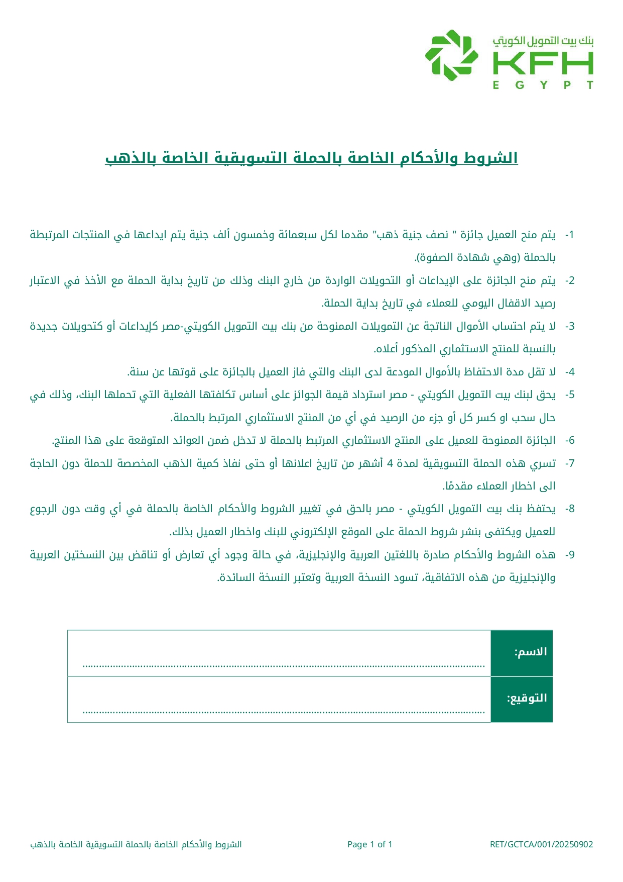بنك بيت التمويل الكويتي مصر يعلن عن عرض خاص على شهادة الصفوة .. نصف جنيه ذهب هدية وعائد تنافسي