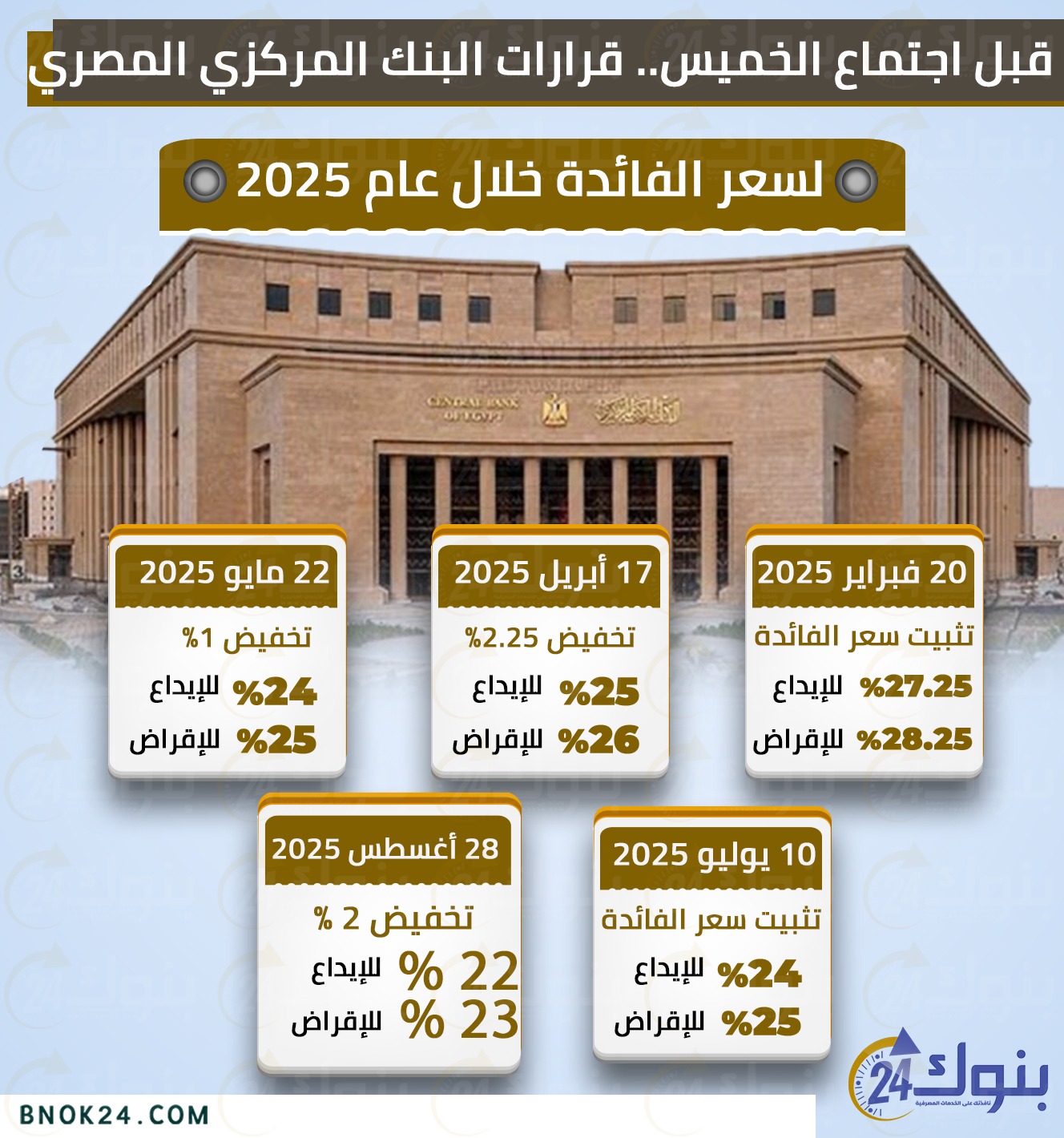 وتستعرض (بوابة بنوك 24) في التقرير التالي تطور أسعار الفائدة في مصر خلال عام 2025.