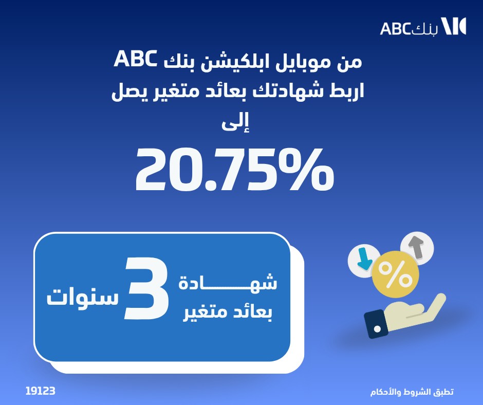 تفاصيل ومزايا شهادة الادخار الثلاثية ذات العائد المتغير من بنك ABC مصر: