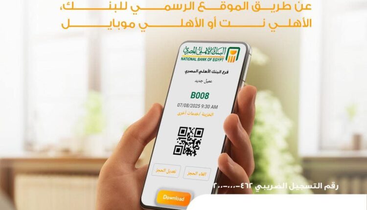 البنك الأهلي المصري يتيح حجز موعد مسبق في فروعه من خلال الموقع الالكتروني وخدمة الأهلي نت أو الأهلي موبايل
