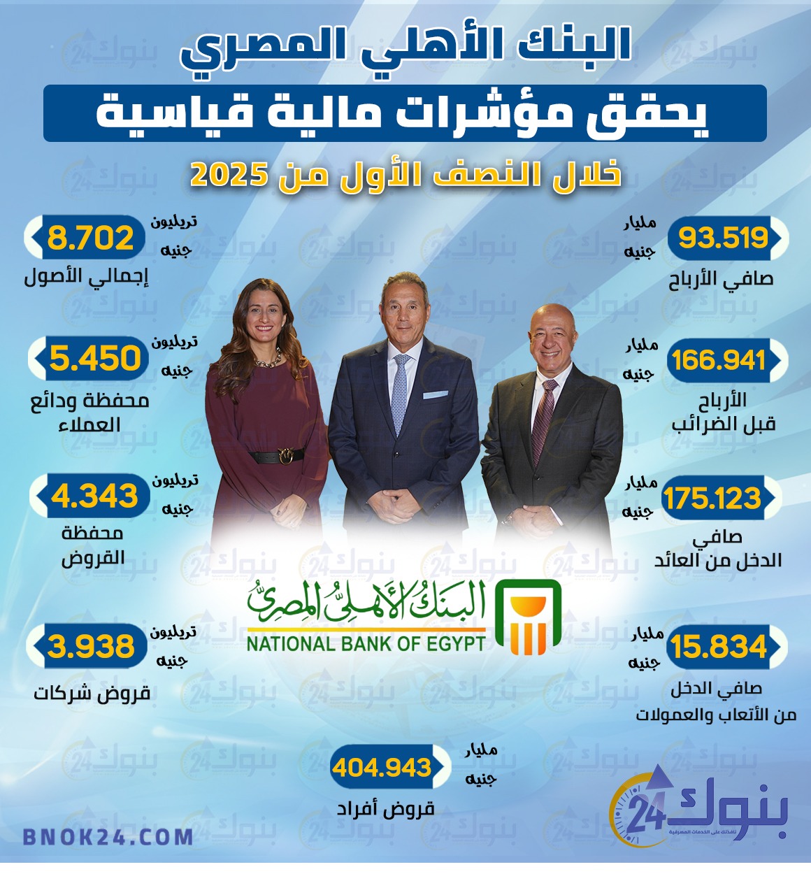 البنك الأهلي المصري يحقق مؤشرات مالية قياسية خلال النصف الأول من 2025 «إنفوجرافيك»