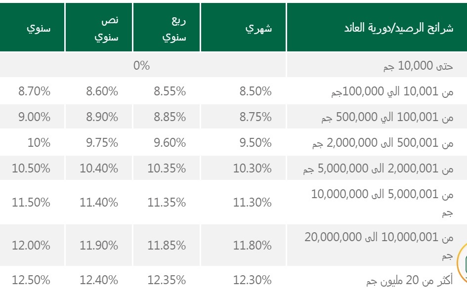 – الحد الأدنى لاحتساب العائد: 10.001 جنيه.