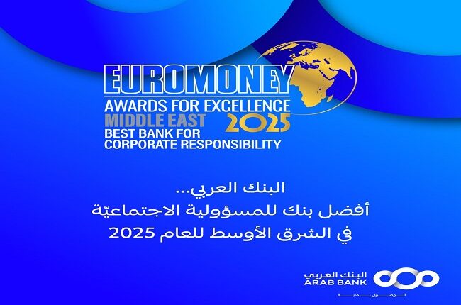 حاز البنك العربي على جائزة “أفضل بنك للمسئولية الاجتماعيّة في الشرق الأوسط لعام 2025” من مجلة يوروموني “Euromoney” الرائدة عالمياً في مجال القطاع المالي ومقرها لندن. وتم اختيار البنك لهذه الجائزة من خلال عملية تقييم شاملة من قبل لجان تحكيم متخصصة واستناداً إلى أبحاث مستقلة، بالإضافة إلى تقييم فريق المحررين في المجلة؛ وذلك تقديراً لإنجازات البنك في مجال المسؤولية الاجتماعية ضمن إطار استراتيجيته الشاملة للاستدامة.