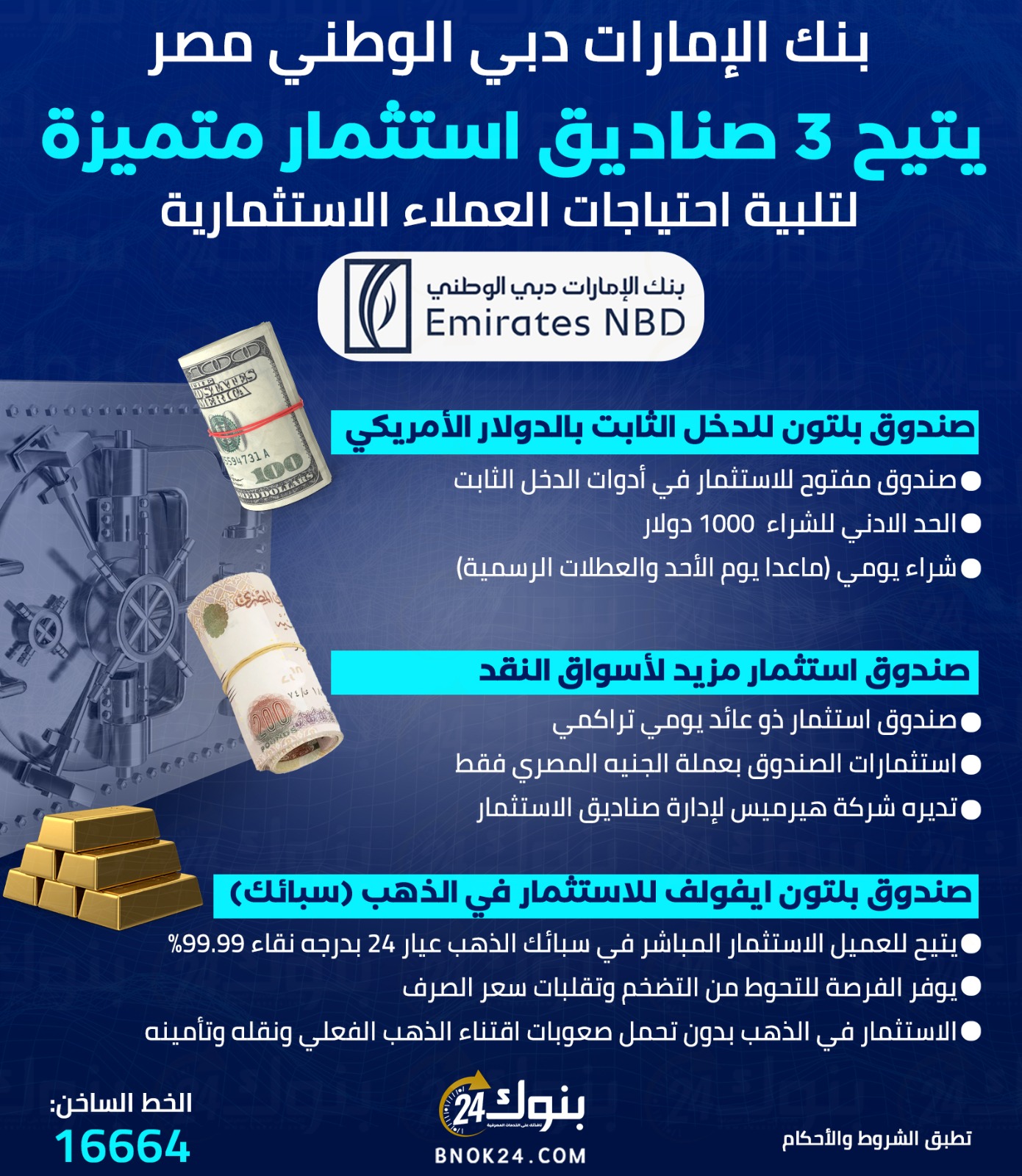 بنك الإمارات دبي الوطني مصر يتيح 3 صناديق استثمار متميزة لتلبية احتياجات العملاء الاستثمارية «إنفوجرافيك»