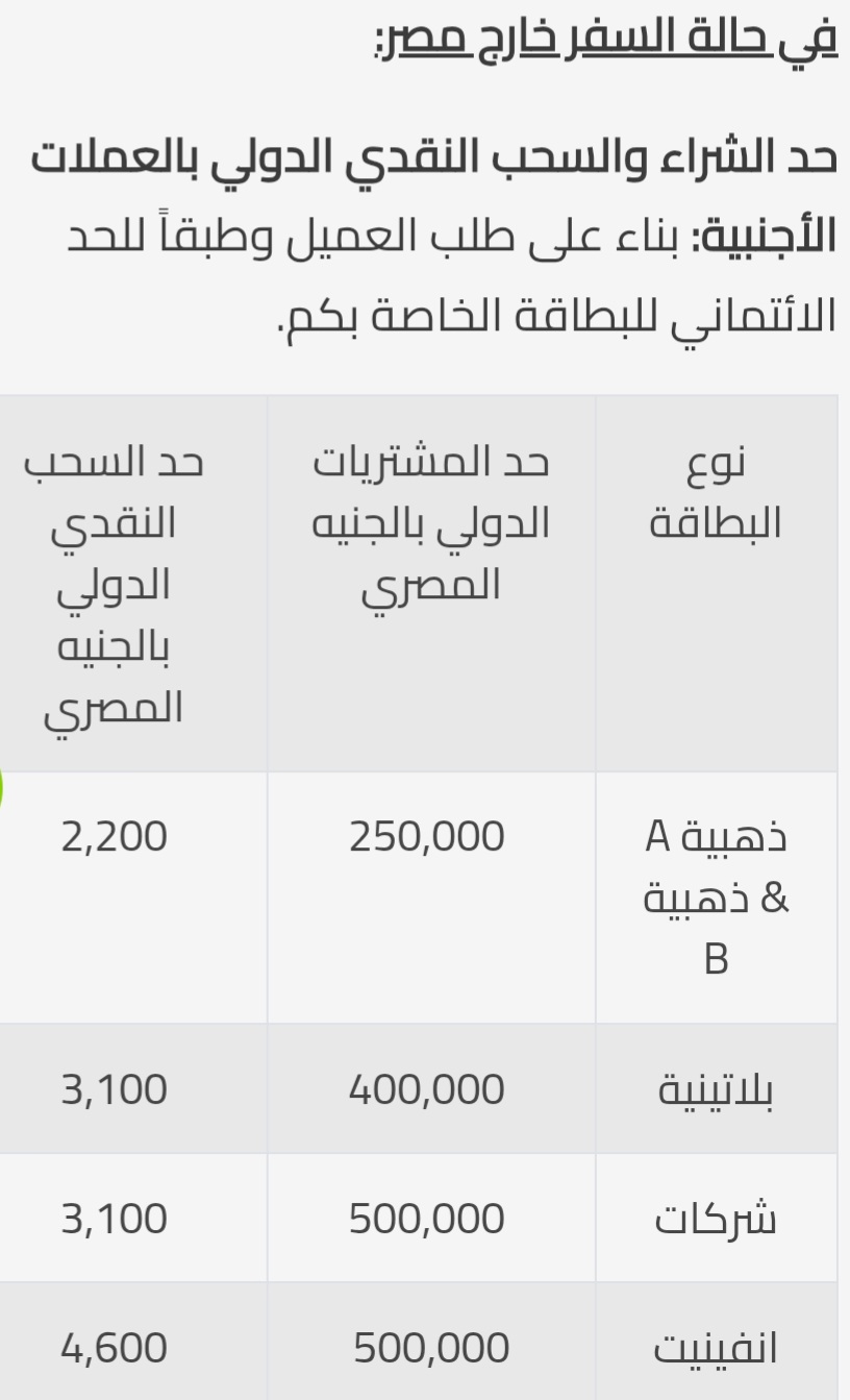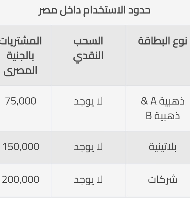 حدود استخدام البطاقات الائتمانية من بنك كريدي أجريكول-مصر داخل وخارج مصر: