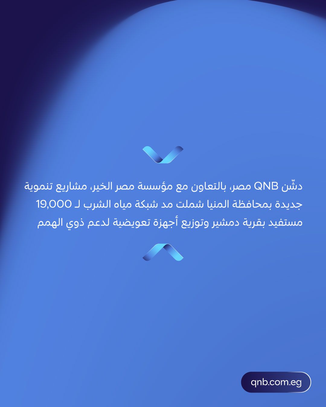 دشّن بنك QNB مصر، بالتعاون مع مؤسسة مصر الخير، مشروعات تنموية جديدة بمحافظة المنيا، شملت مد شبكة مياه الشرب لـ 19000 مستفيد بقرية دمشير وتوزيع أجهزة تعويضية لدعم ذوي الهمم.