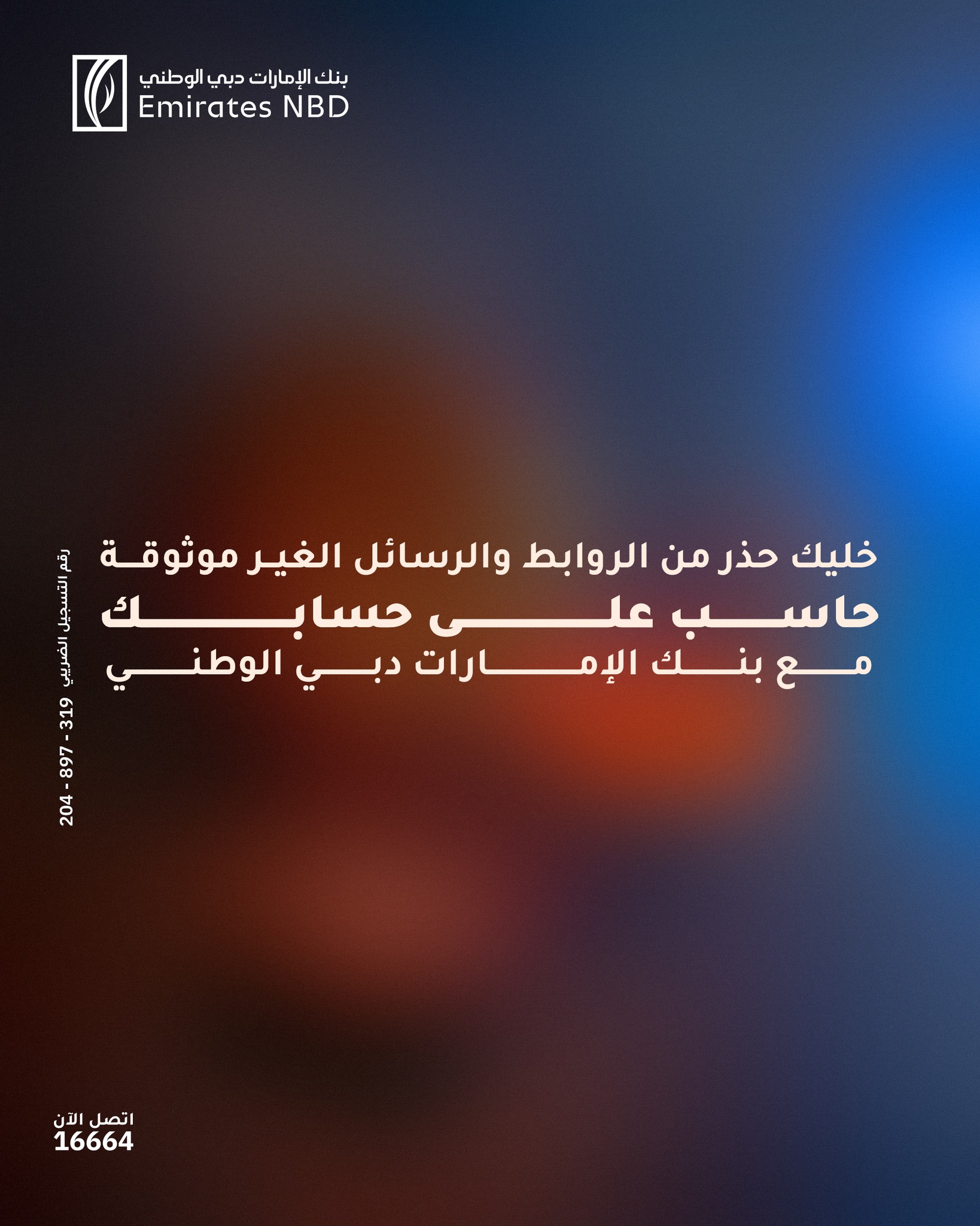 كما شدد بنك الإمارات دبي الوطني على العملاء عدم مشاركة بياناتهم البنكية مع أي شخص، وحماية معلوماتهم البنكية سرية.