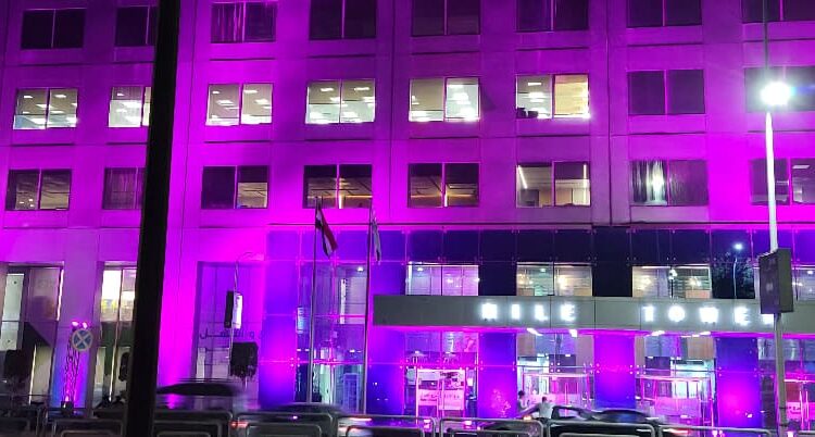 ميدبنك يشارك في شهر التوعية بسرطان الثدي بإضاءة مركزه الرئيسي باللون الوردي