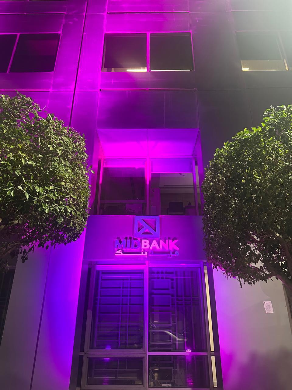 ميدبنك يشارك في شهر التوعية بسرطان الثدي بإضاءة مركزه الرئيسي باللون الوردي