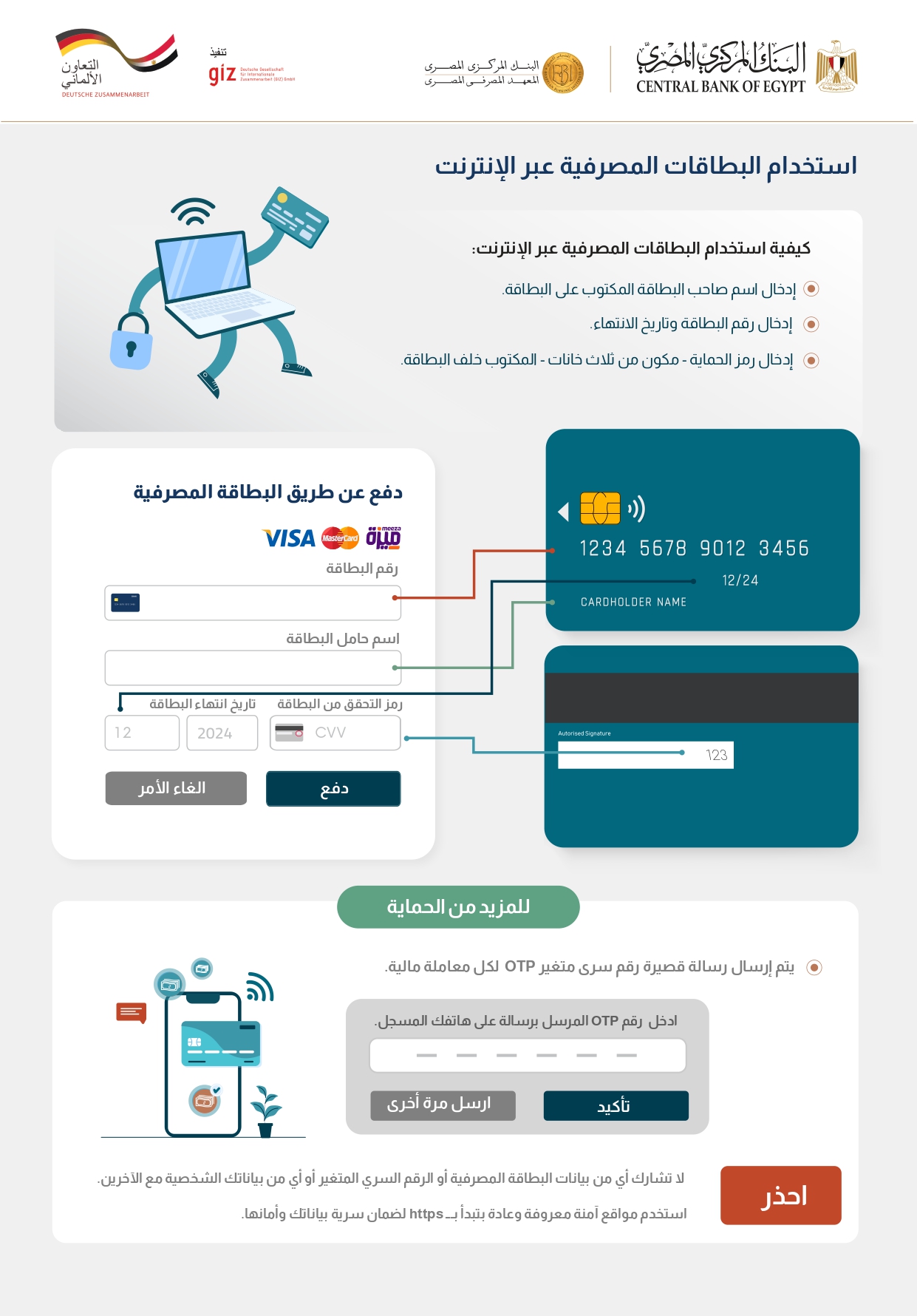 وشدد البنك على ضرورة استخدام مواقع آمنة معروفة وعادة ما تبدأ بـــ https لضمان سرية بيانات البطاقة البنكية وأمانها.