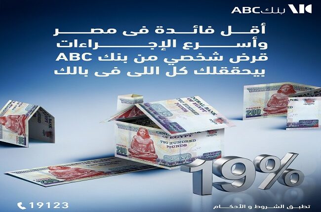 القرض الشخصي من بنك ABC.. يصل إلى 5 ملايين جنيه بالقسط حتى 12 سنة بأقل سعر فائدة في مصر