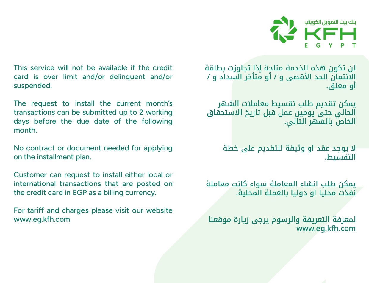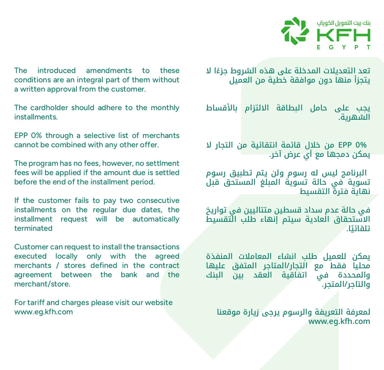 أعلن بنك بيت التمويل الكويتي – مصر KFHEgypt، عبر صفحته الرسمية على موقع التواصل الاجتماعي فيسبوك، عن أحدث عروضه للعملاء حاملي بطاقاته الائتمانية.