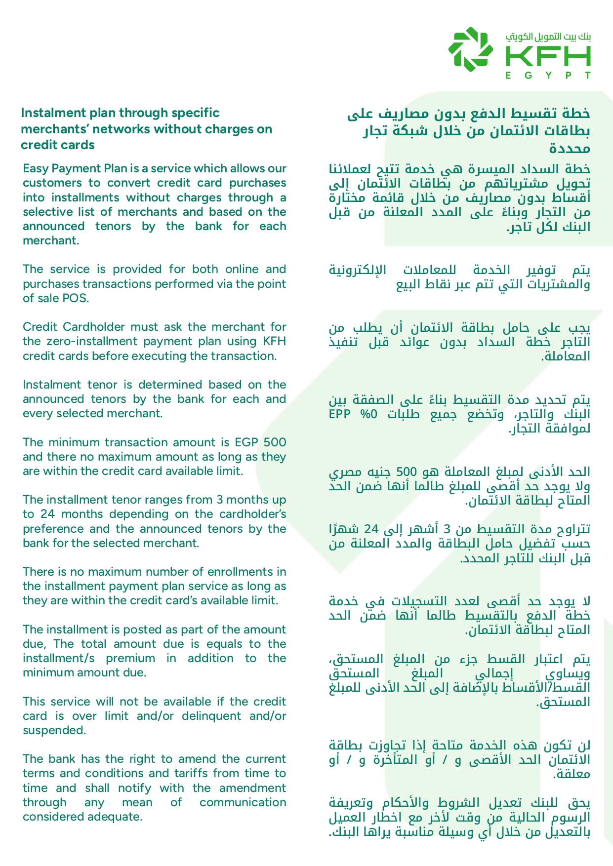 بطاقات بنك بيت التمويل الكويتي مصر تتيح تقسيط المشتريات حتى 6 أشهر بدون أرباح