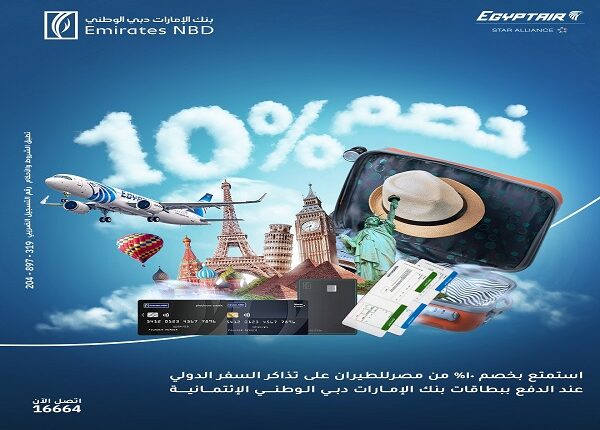 بنك الإمارات دبي الوطني مصر يعلن عن خصم 10% على حجز تذاكر مصر للطيران ببطاقات الائتمان