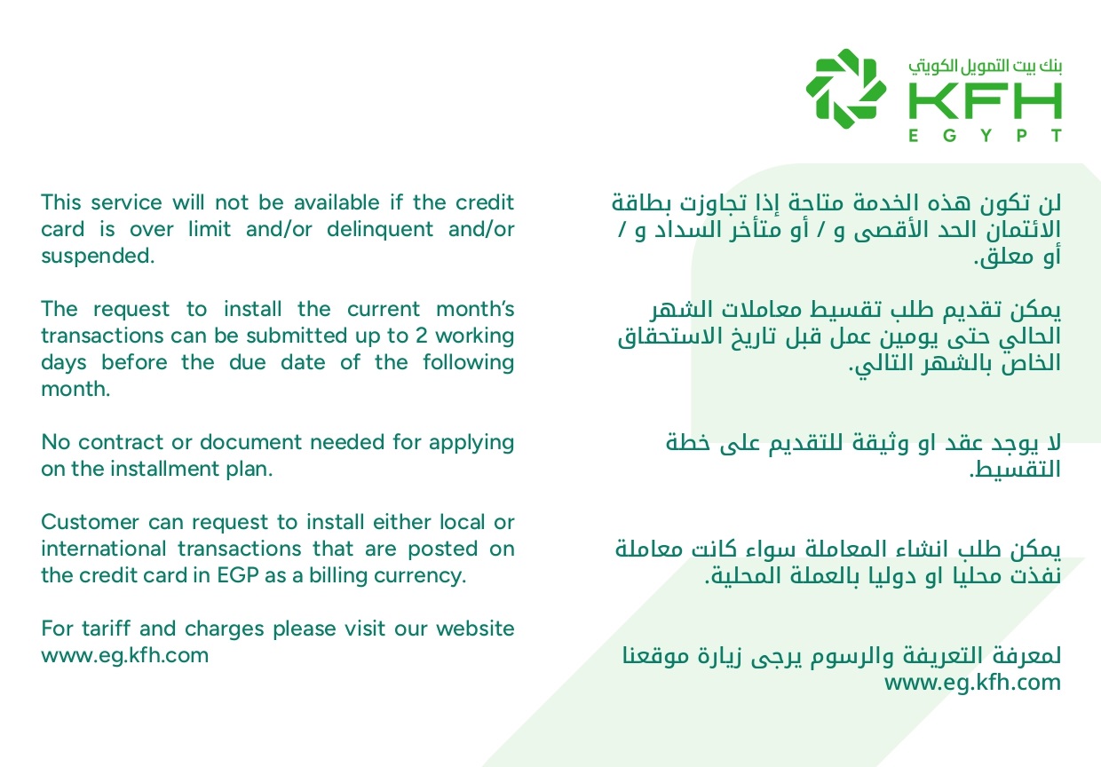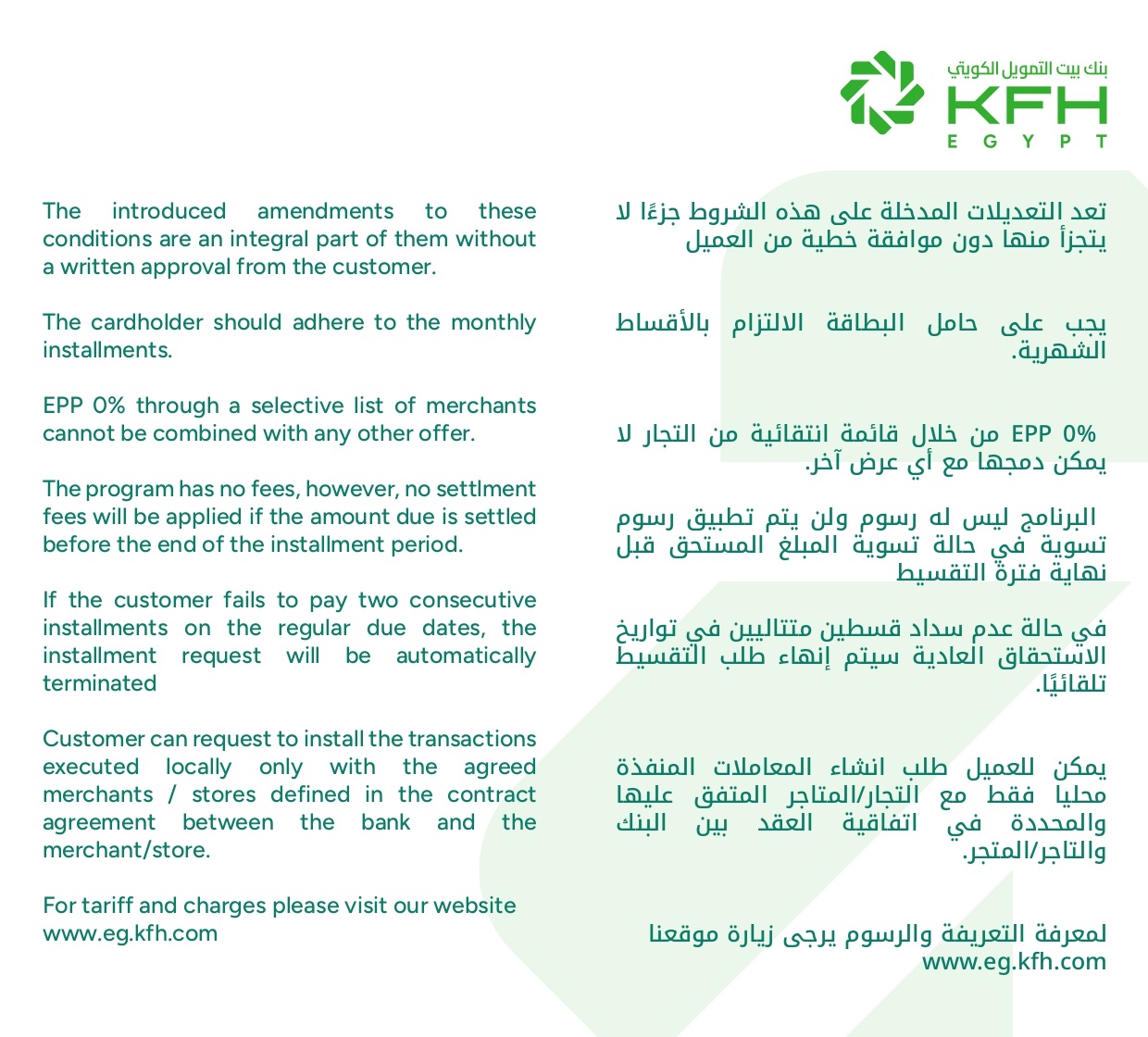 أعلن بنك بيت التمويل الكويتي – مصر KFHEgypt، عبر صفحته الرسمية على موقع التواصل الاجتماعي فيسبوك، عن أحدث عروضه للعملاء حاملي بطاقاته الائتمانية.