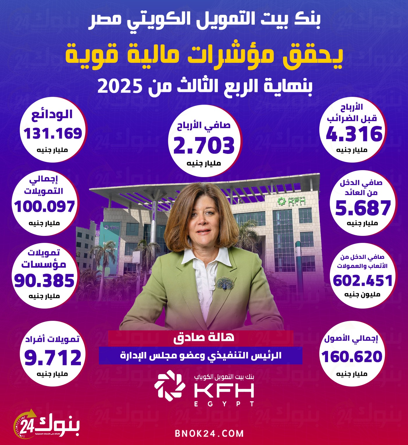 بنك بيت التمويل الكويتي مصر يحقق مؤشرات مالية قوية بنهاية الربع الثالث من 2025 «إنفوجرافيك»