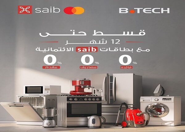 بنك saib يتيح تقسيط المشتريات من B.TECH حتى 12 شهراً بدون فوائد أو مصاريف إدارية