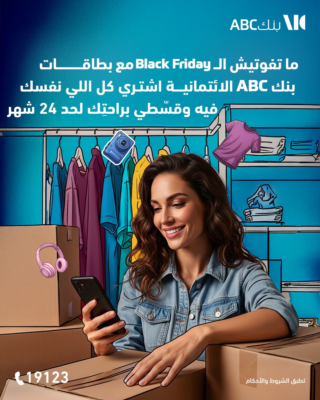 عرض الـ Black Friday من بنك ABC مصر..قسّط مشترياتك حتى 24 شهراً ببطاقات ABC الائتمانية