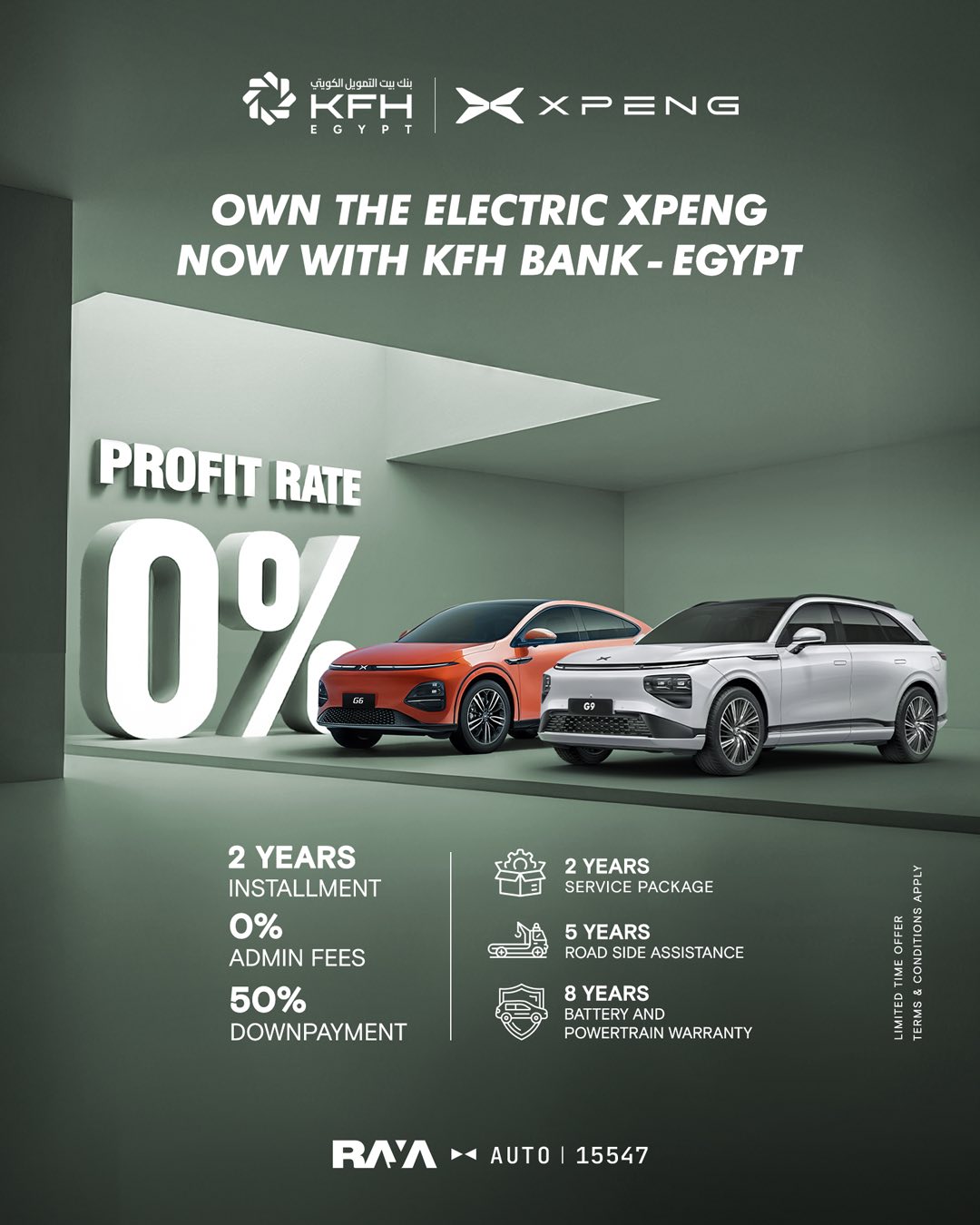 ويتيح البنك للعملاء الحصول على تمويل لشراء سيارات XPENG G9 و G6 من Raya Auto بدون أرباح لمدة عامين، وبدون مصاريف إدارية، مع خدمة مجانية لمدة سنتين، ومساعدة على الطريق لمدة 5 سنوات، وضمان لمدة 8 سنوات.