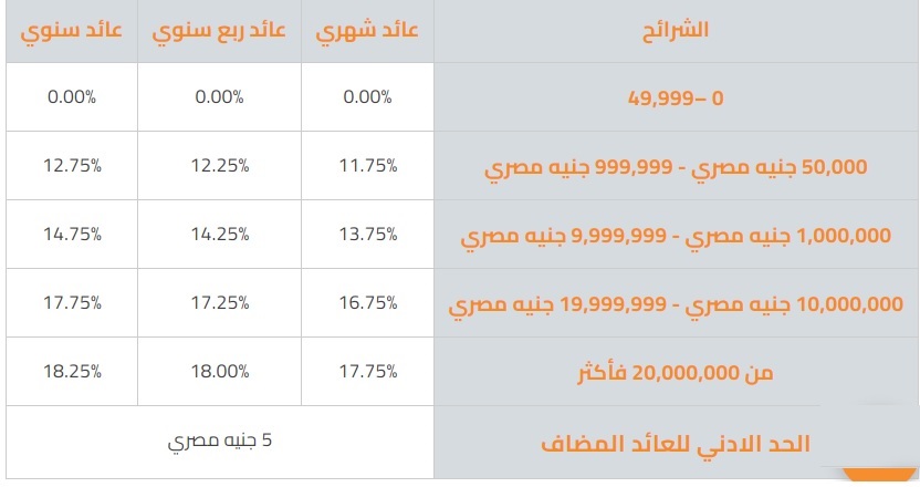 – الحد الأدنى لاحتساب العائد 50.000 جنيه مصري.