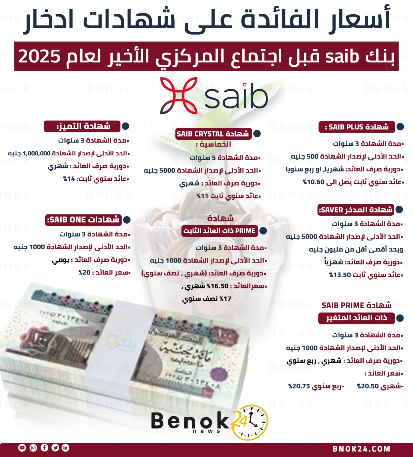أسعار الفائدة على شهادات ادخار بنك saib قبل اجتماع المركزي الأخير لعام 2025
