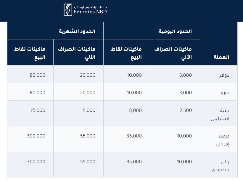– الوصول المباشر لحسابك الشخصي بالعملة الأجنبية للسحب والاستعلام عن الرصيد بإستخدام ماكينات الصراف الآلي التابعة لبنك الإمارات دبي الوطني أو أي ماكينة أخرى متواجدة دولياً خارج مصر.