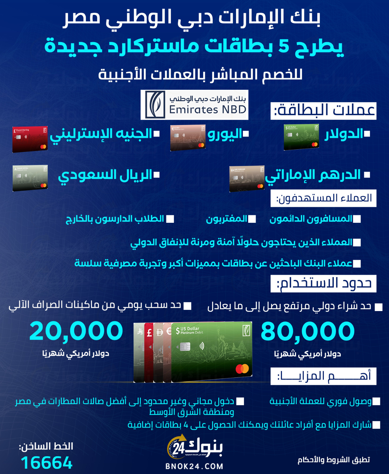 بنك الإمارات دبي الوطني مصر يطرح 5 بطاقات ماستركارد جديدة للخصم المباشر بالعملات الأجنبية «إنفوجرافيك»