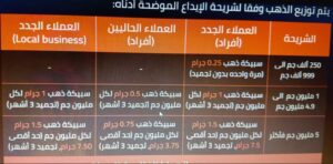 • نوع الهدايا : سبائك ذهبية بأوزان مختلفة وفقاً لشريحة الإيداع .