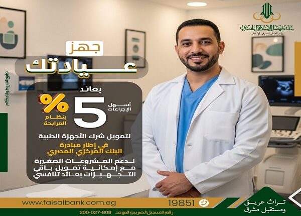 بنك فيصل يتيح تمويل تجهيز العيادات الطبية ضمن مبادرة المركزي لدعم المشروعات الصغيرة بعائد 5% فقط