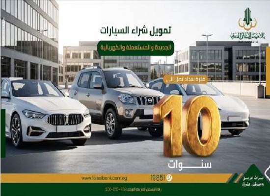 كشف بنك فيصل الإسلامي المصري عن إتاحة فرصة الحصول على تمويل لشراء السيارات الجديدة والمستعملة والكهربائية بنظام المرابحة، وبأقل عائد وأطول فترة سداد تصل إلى 10 سنوات.