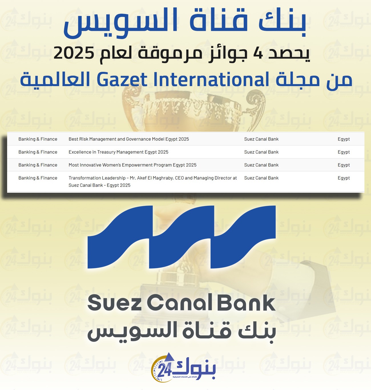 وفي الـ «إنفوجرافيك» التالي تعرض بوابة (بنوك 24) جوائز بنك قناة السويس لعام 2025 من مجلة Gazet International العالمية.