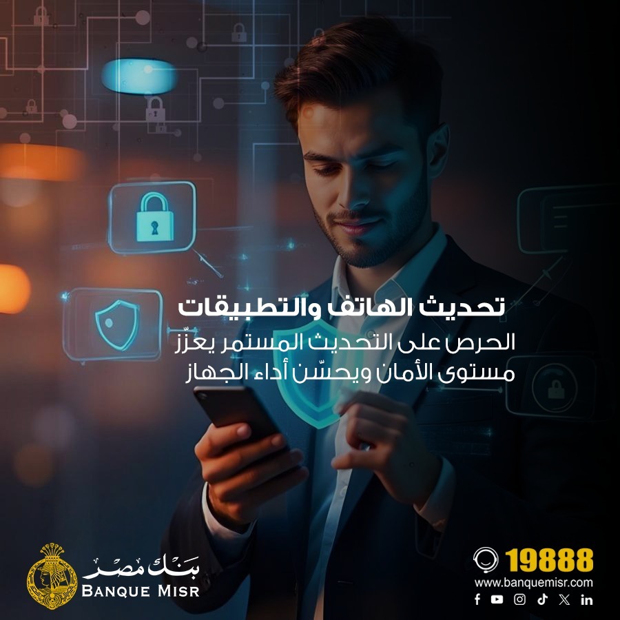 وقدم بنك مصر أهم الإرشادات الأساسية للحماية من الاحتيال، وهي: التحديثات المنتظمة، تجنّب الروابط غير الموثوقة، وتعزيز حماية الحسابات بوسائل آمنة وسهلة.