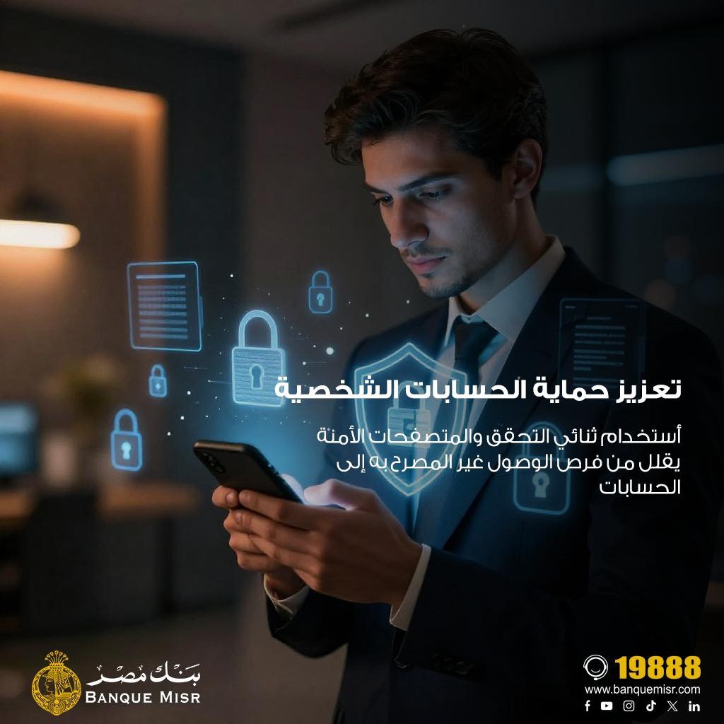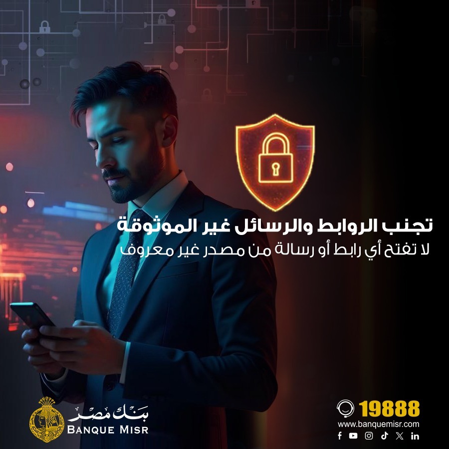 يأتي ذلك في إطار حرص بنك مصر على حماية أموال المودعين والحفاظ عليها وتوعيتهم من أية عمليات احتيال أو سرقة.