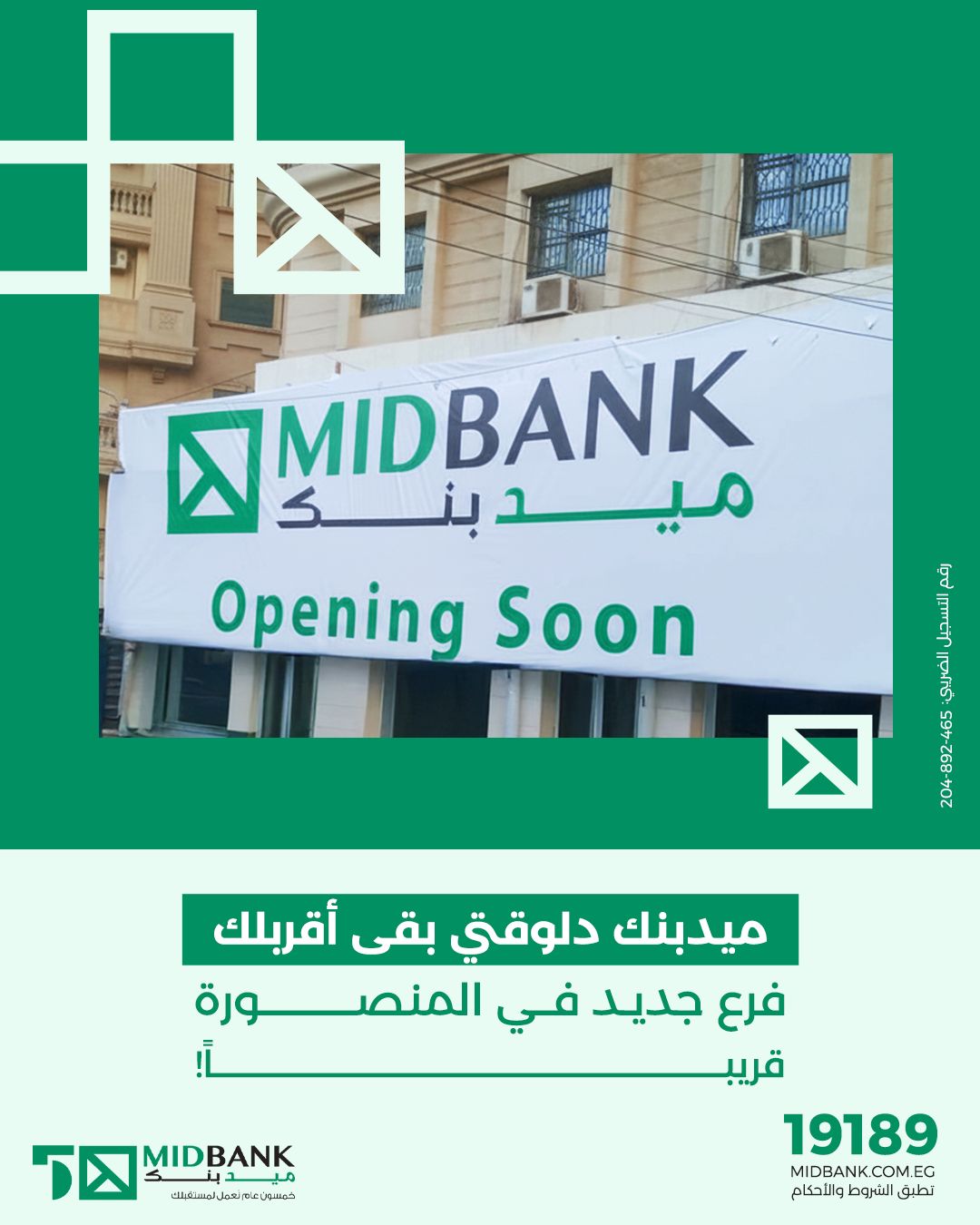 ميدبنك يستعد لافتتاح فرع جديد في مدينة المنصورة