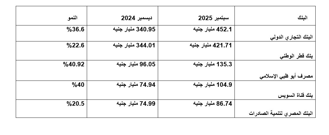 الأرقام الواردة تشير بوضوح إلى أن معظم البنوك محل التحليل نجحت في تحقيق معدلات نمو قوية، وإن تفاوتت نسب هذا النمو من بنك إلى آخر وفقًا لاستراتيجيات كل مؤسسة وهيكل محافظها الائتمانية.