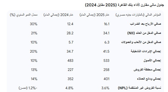 حقق بنك القاهرة أداءً ماليًا قويًا خلال عام 2025، مدعومًا بنمو ملحوظ في الأرباح ومؤشرات التشغيل الرئيسية، إلى جانب تحسن جودة الأصول وتعزيز معدلات كفاية رأس المال، بما يعكس قدرة البنك على التوسع المتوازن والحفاظ على مستويات قوية من الربحية والسيولة.