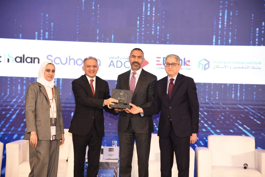 وتسلّم التكريم عاكف المغربي، الرئيس التنفيذي والعضو المنتدب لبنك قناة السويس.