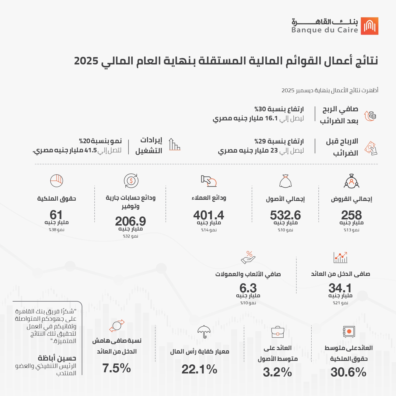 حقق بنك القاهرة أداءً إيجابيًا خلال العام المالي 2025، حيث سجل نموًا في صافي أرباحه بنسبة 30% مقارنة بالعام السابق.