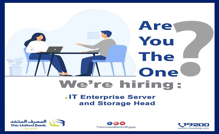 أعلن المصرف المتحد، عبر صفحته الرسمية على موقع التوظيف LinkedIn، عن حاجته إلى شغل فرص عمل خالية لديه في وظيفة IT Enterprise server and storage Head .